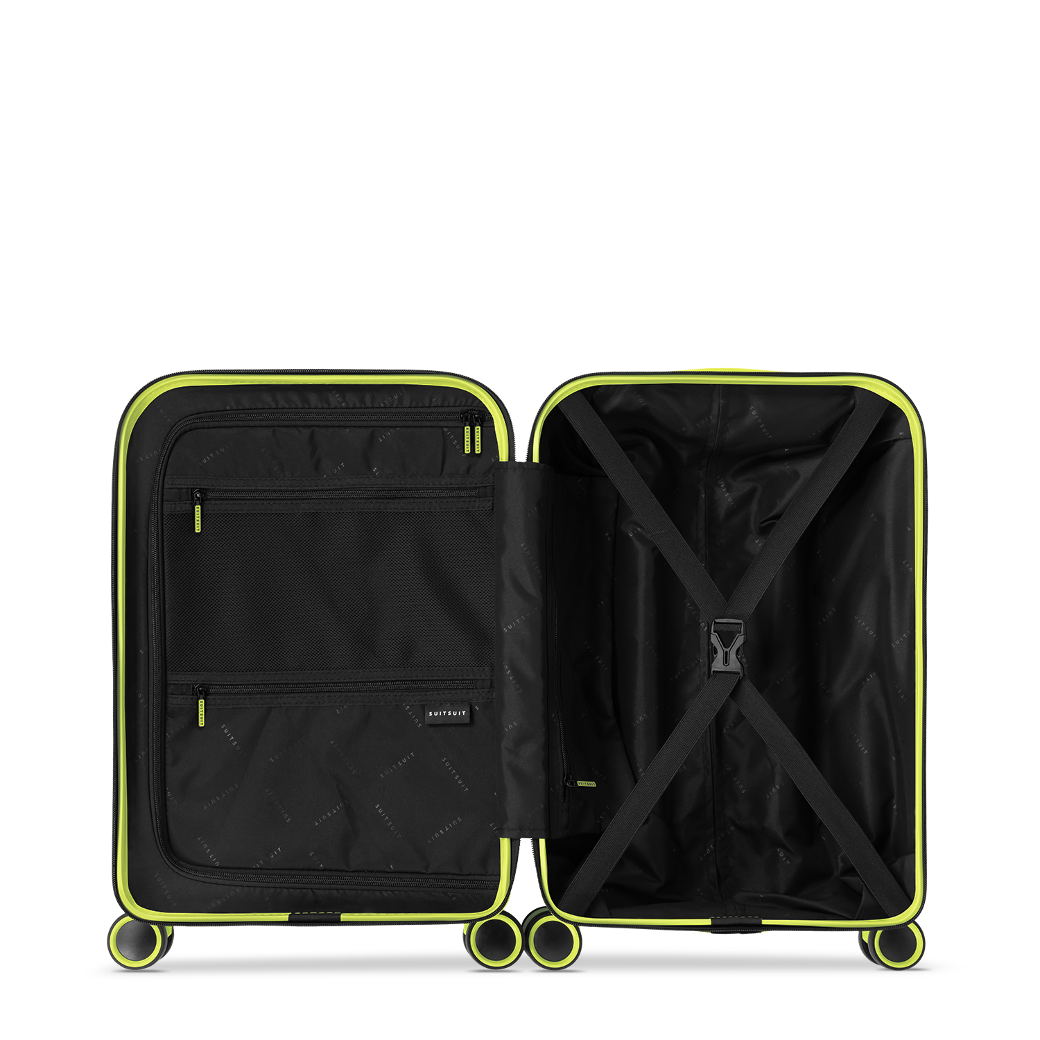- Deze set bevat de Cyber Lime handbagage koffer (55cm) en de Expression beschermhoes (55cm).
