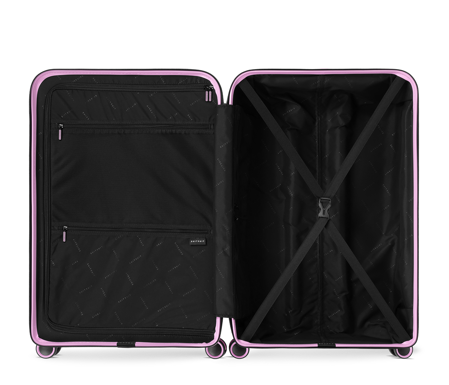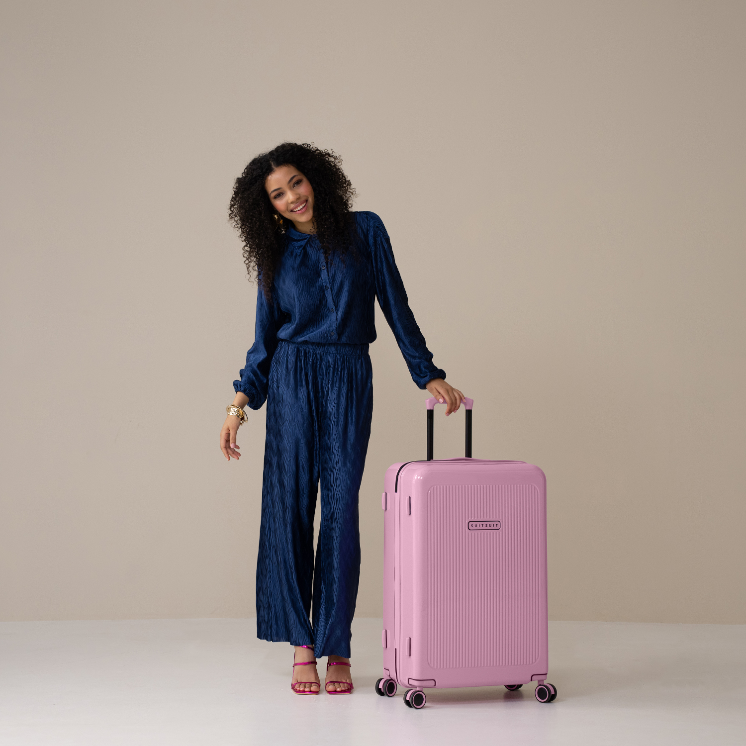- Deze set bevat de Fondant Pink reiskoffer (76cm) en de Expression beschermhoes (76cm).