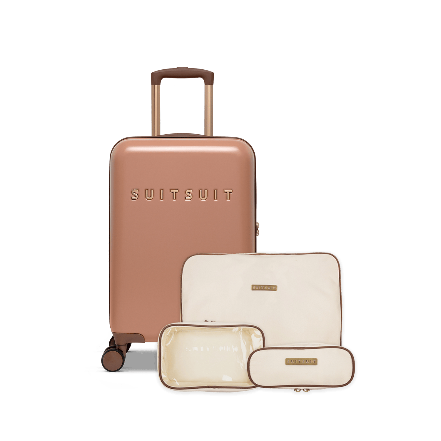 - Deze set bevat de Italian Clay handbagage koffer (55cm) en de Antique White packing cube set (55cm).
