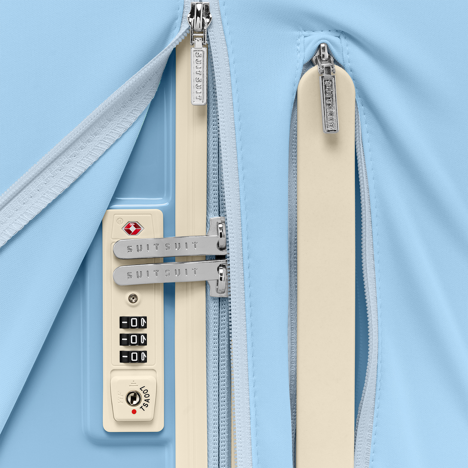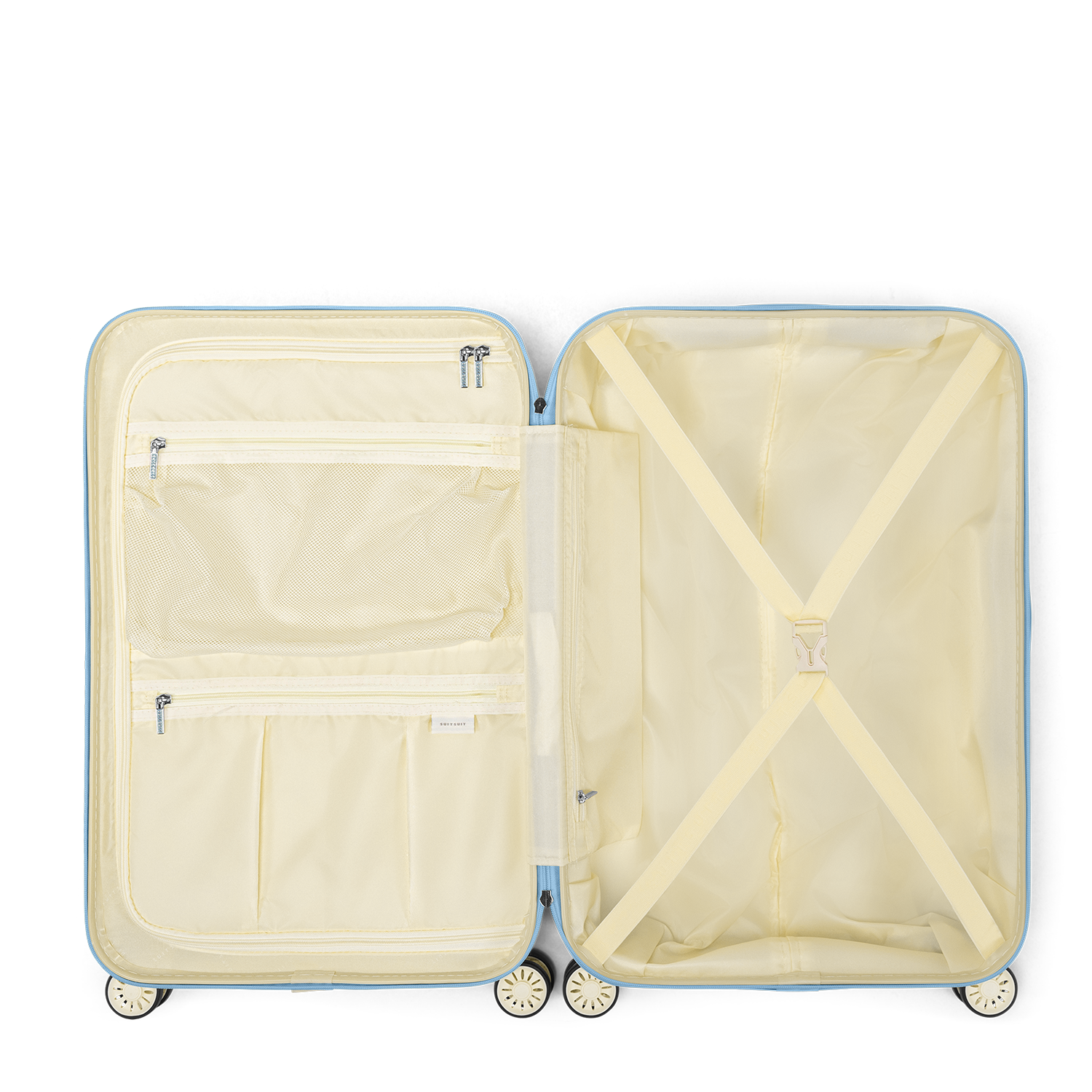 - Deze set bevat de Chambray Blue reiskoffer (76 cm), de Chambray Blue handbagage koffer (55 cm) en twee Chambray Blue beschermhoezen (55 cm en 76 cm).
