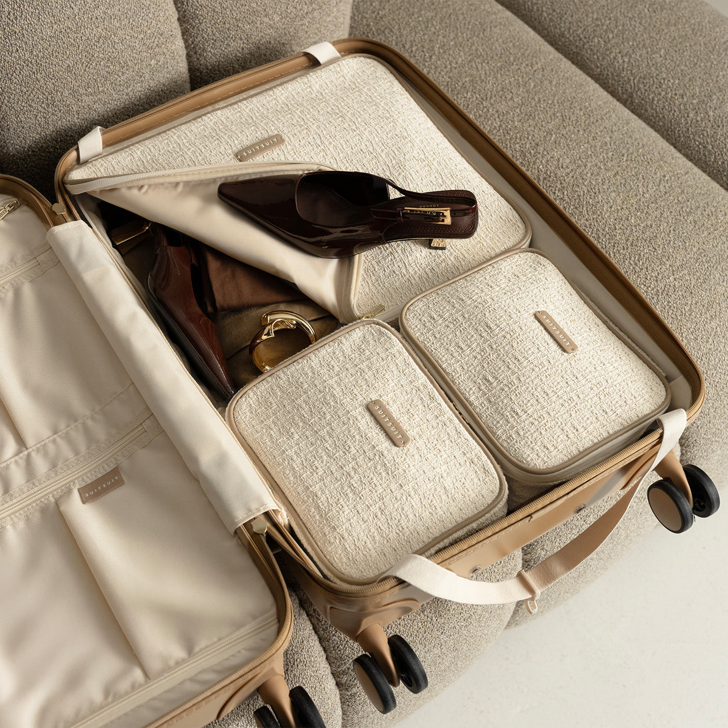 De Fusion – Full Package Set (66cm) biedt alles wat je nodig hebt om comfortabel en perfect voorbereid op reis te gaan. Deze complete set bestaat uit een handbagagekoffer, packing cube set en een stevige beschermhoes en zorgt dat je bagage beschermd blijft en optimaal is ingepakt. Ideaal voor een trip van één tot twee weken, zodat je altijd goed voorbereid en met gemak op pad gaat.