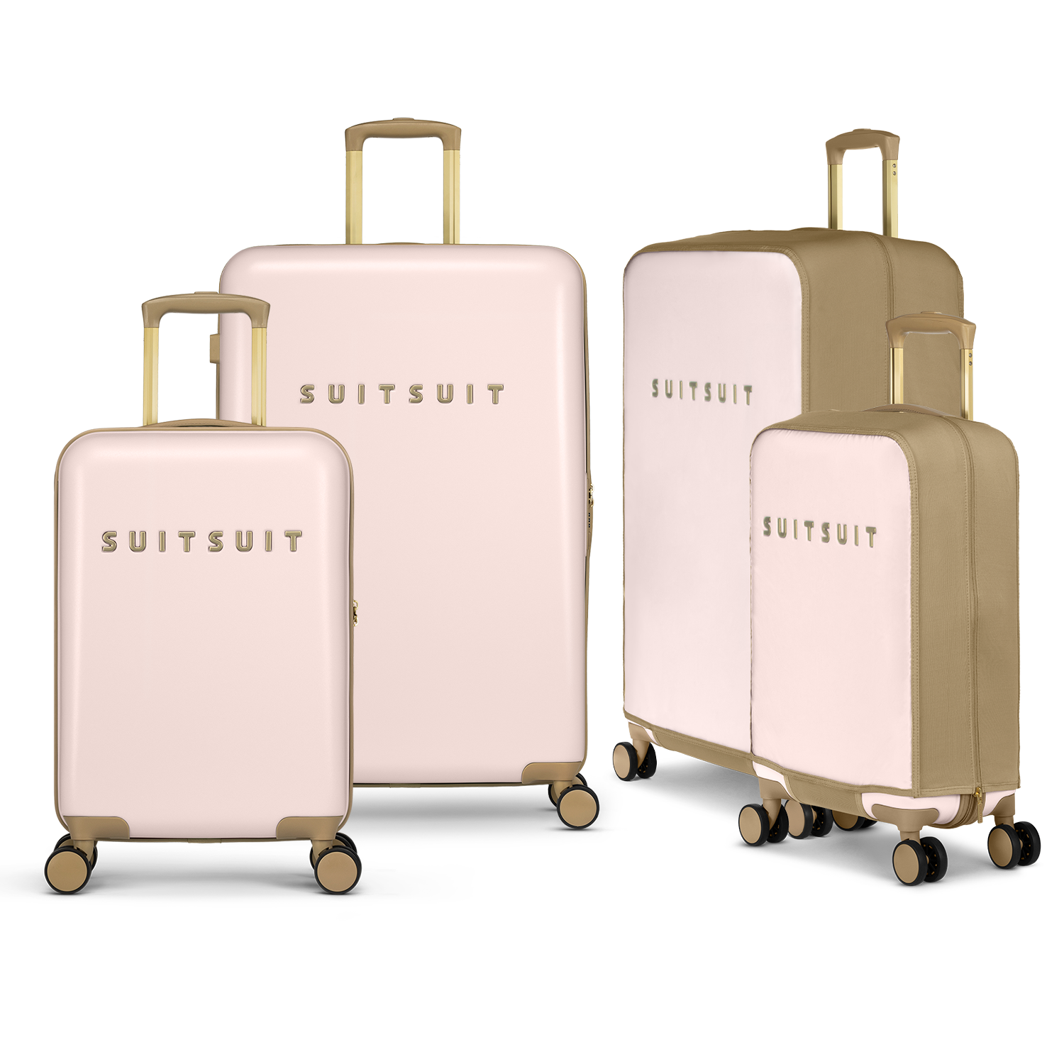 - Deze set bevat de Rose Pearl reiskoffer (76 cm), de Rose Pearl handbagage koffer (55 cm) en twee Iced Coffee beschermhoezen (55 cm en 76 cm).