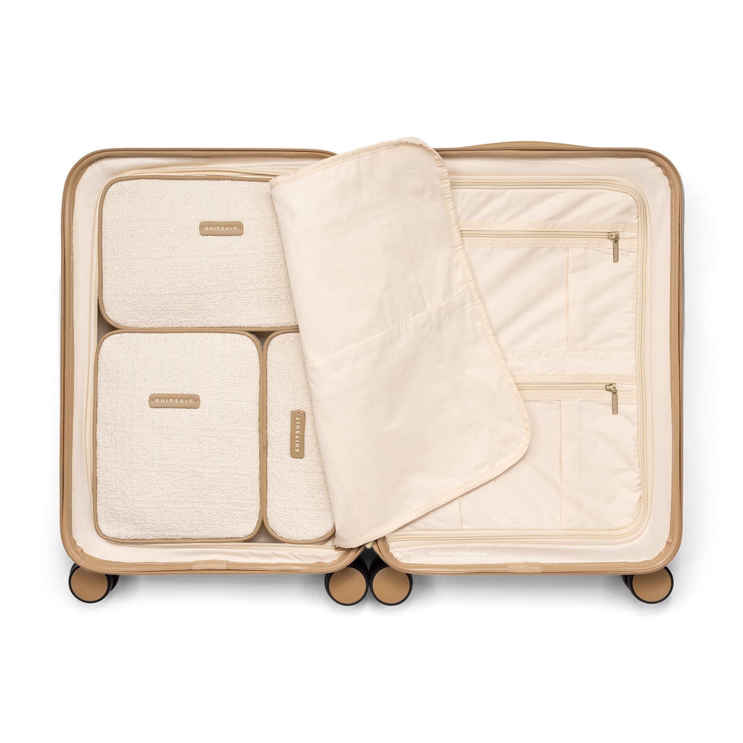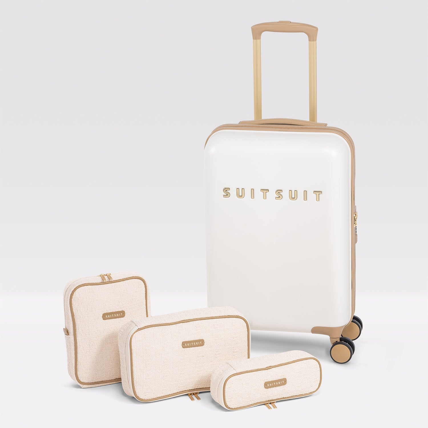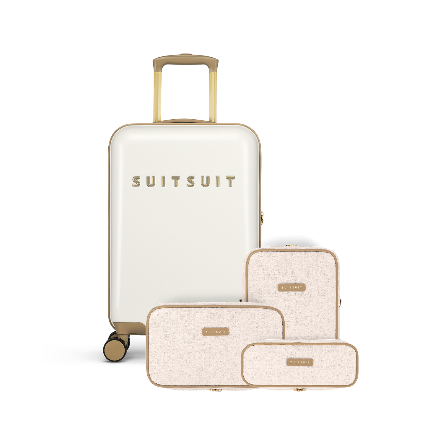 - Deze set bevat de White Swan handbagage koffer (55cm) en de Sloppy Cotton packing cube set (55cm).